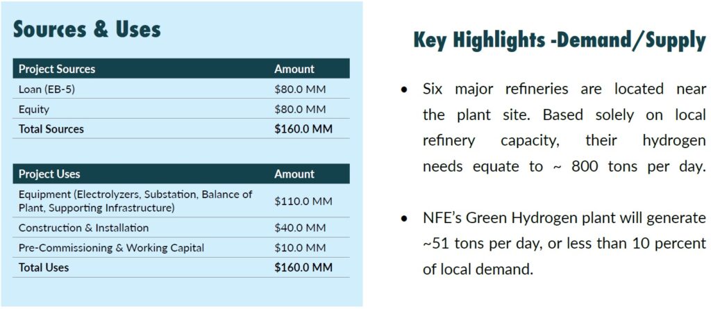 New Fortress Energy (NFE) is undertaking the ground-up construction of what is expected to be one of North America’s largest green hydrogen projects – a 120 megawatt (“MW”) “green” Hydrogen gas production facility that is fully permitted and projected to come on-line by mid 2024. The project is strategically located near Beaumont in the Port Arthur Industrial Complex and will serve as a clean energy power source for many industrial customers located within miles of the facility. The project includes the construction of a logistical network to bring the clean hydrogen product to users, mainly the large oil refineries in the region.